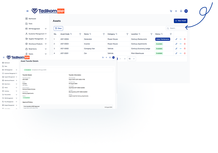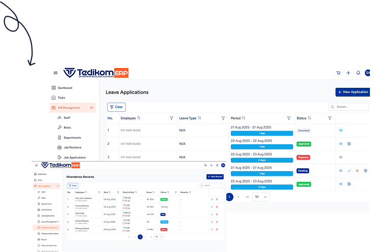 From purchase orders to leave requests, Tedikom ERP routes submissions to the right people, tracks progress, and ensures timely approvals—reducing delays and improving accountability.